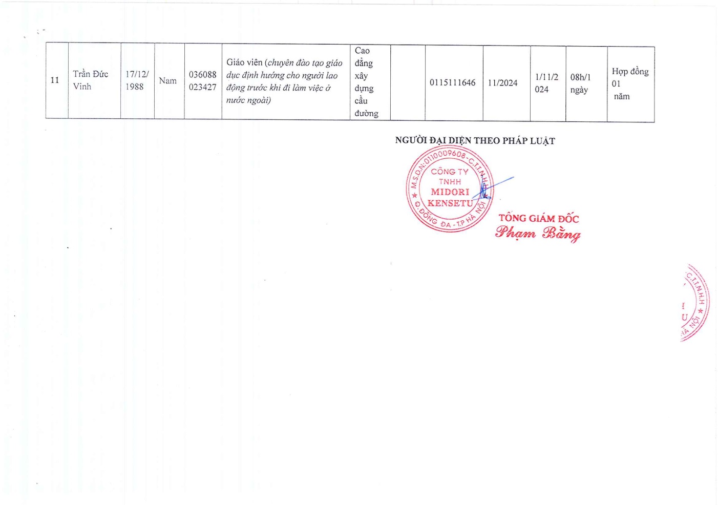 7. DANH SÁCH NHÂN VIÊN NGHIỆP VỤ THỰC HIỆN HOẠT ĐỘNG DỊCH VỤ ĐƯA NGƯỜI LAO ĐỘNG VIỆT NAM ĐI LÀM VIỆC Ở NƯỚC NGOÀI THEO HỢP ĐỒNG